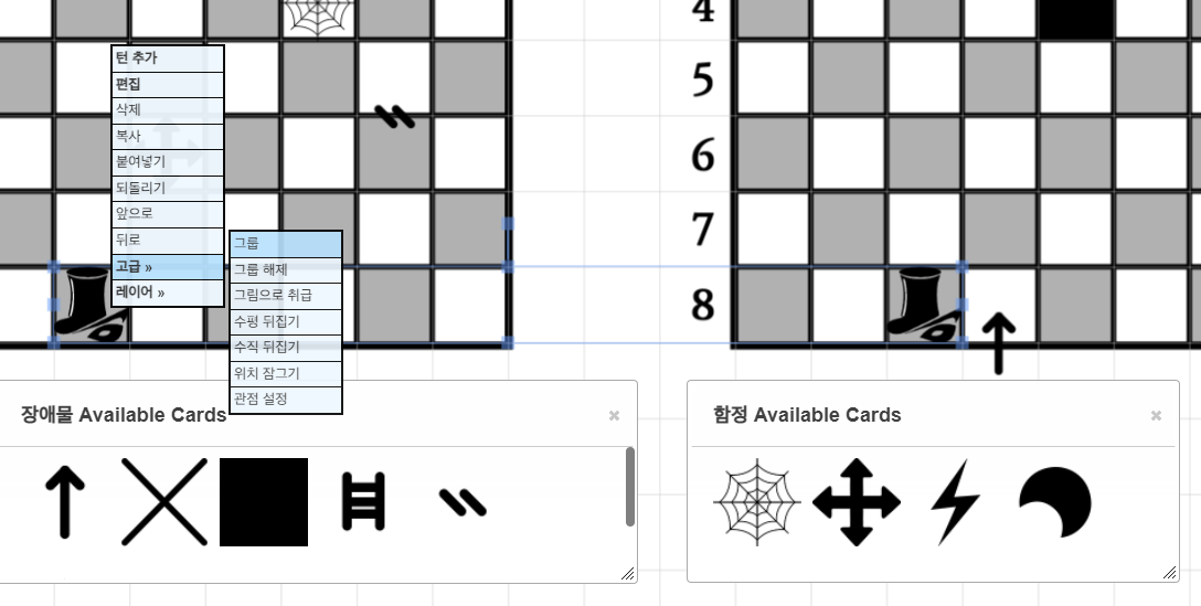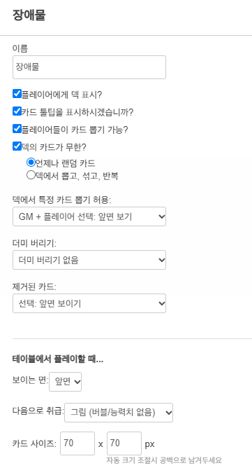 함정의 경우 위처럼 카드덱으로 설정하시면, 플레이어가 직접 배치할 수 있습니다.