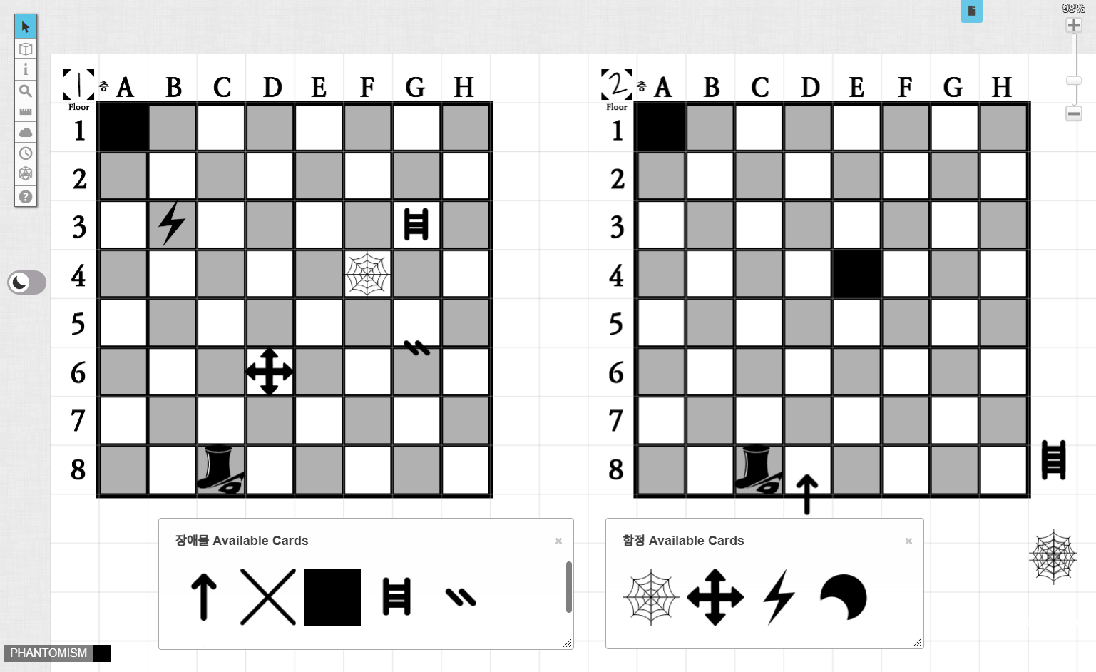 - PHANTOMISM의 온라인 세션에 사용할 수 있는 체스 시트와 아이콘.