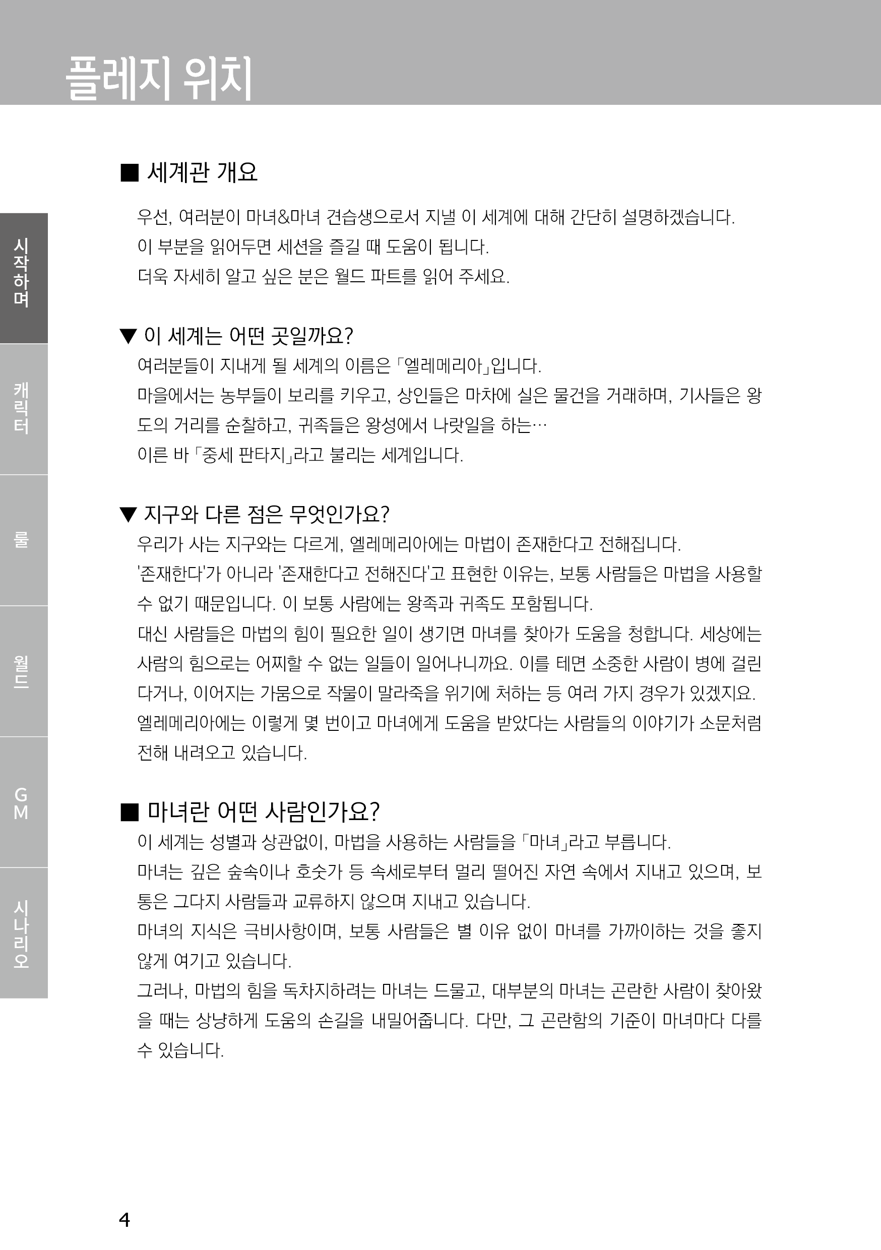 GM은 『마녀』, PL은 그의 제자인 『견습마녀』가 되어