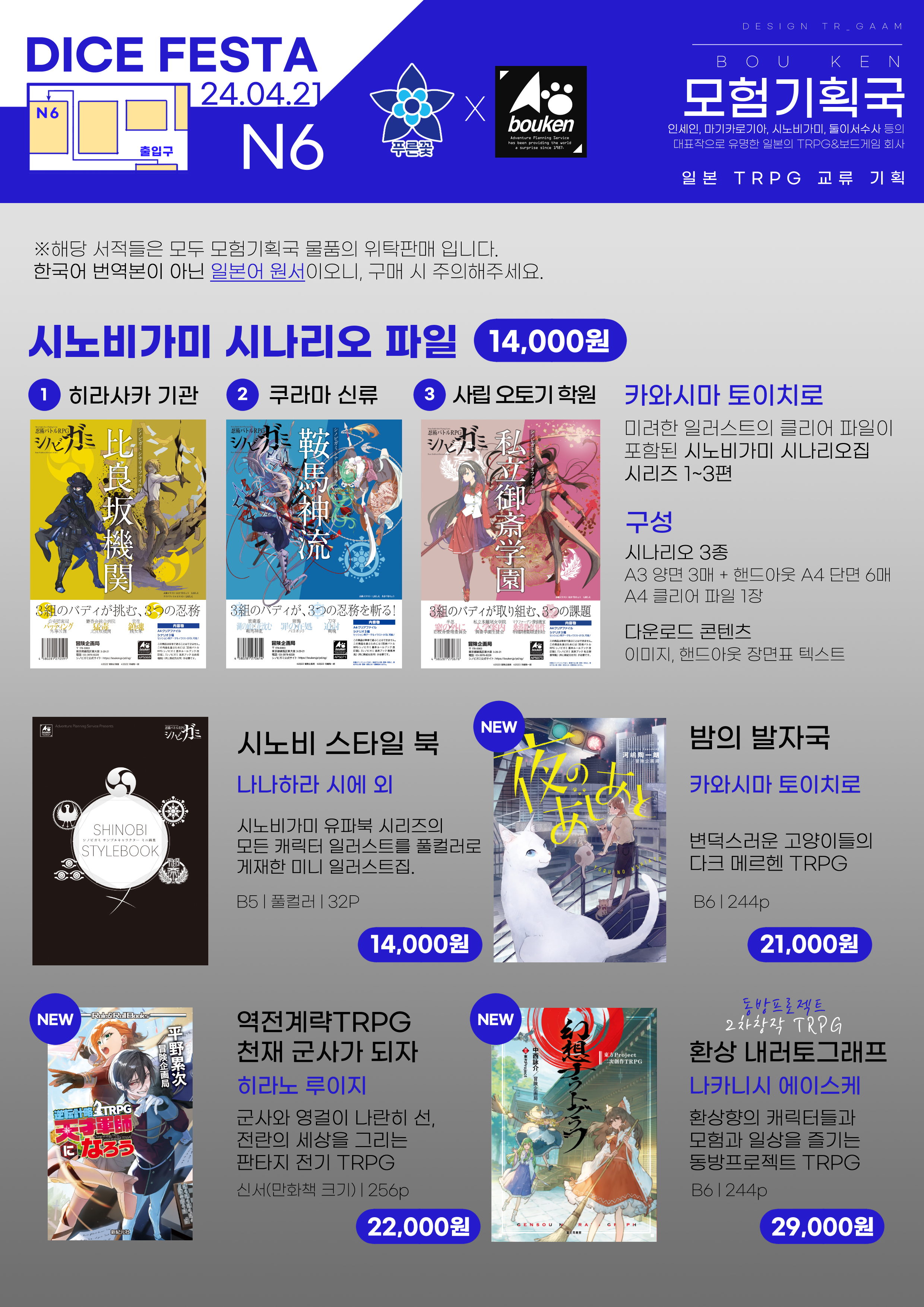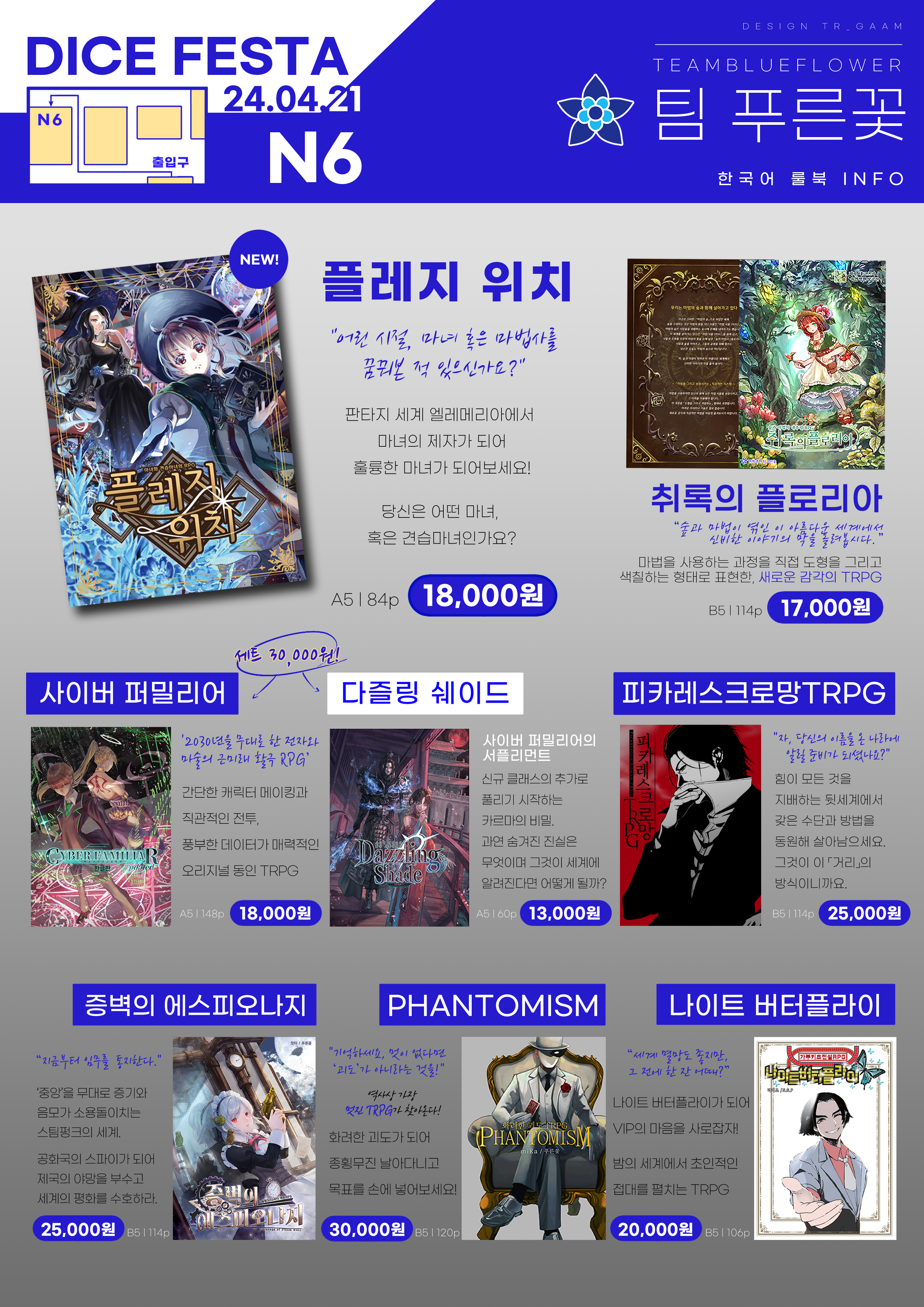 2024년 4월 21에 개최되는 다이스페스타DICEFESTA의 푸른꽃 부스 통합 인포입니다.