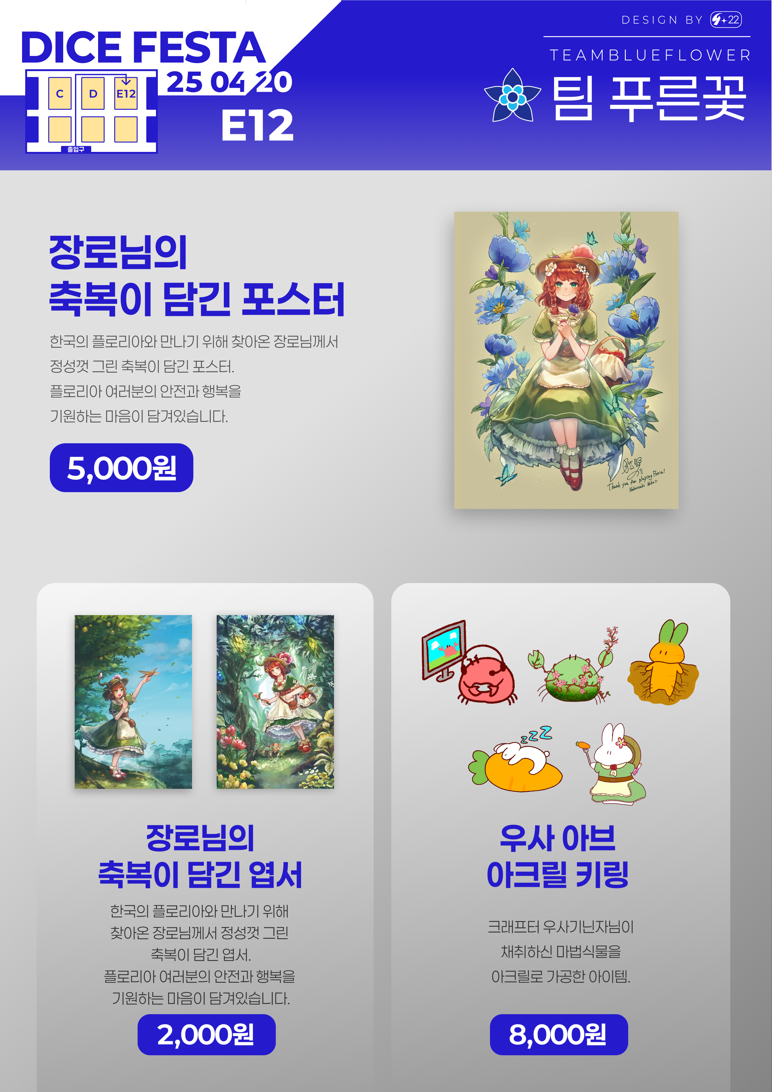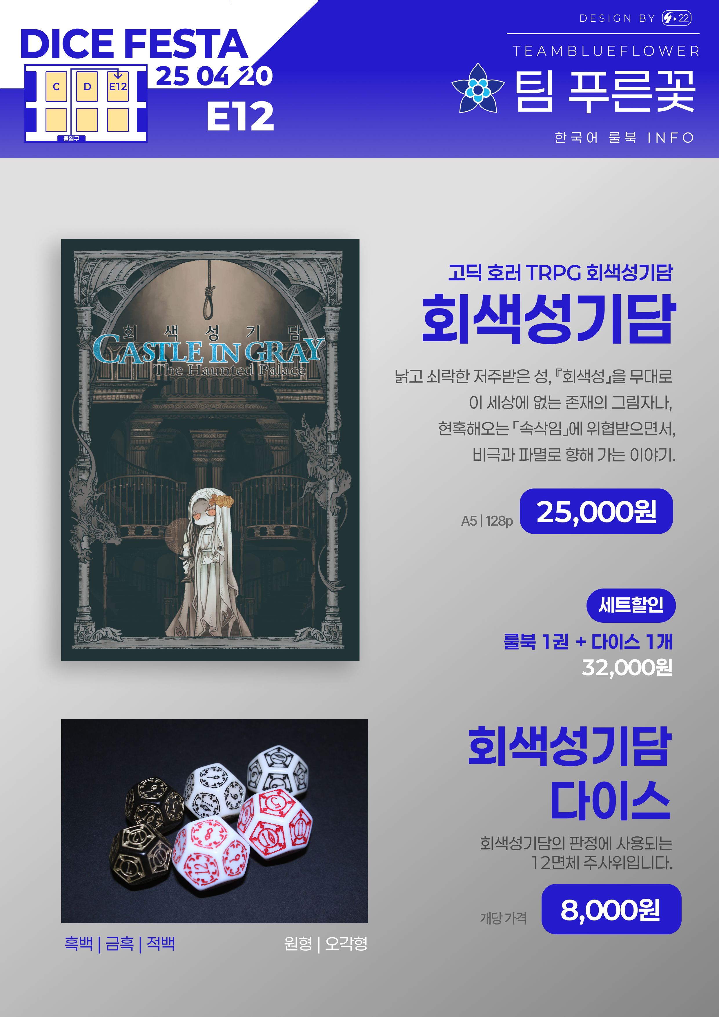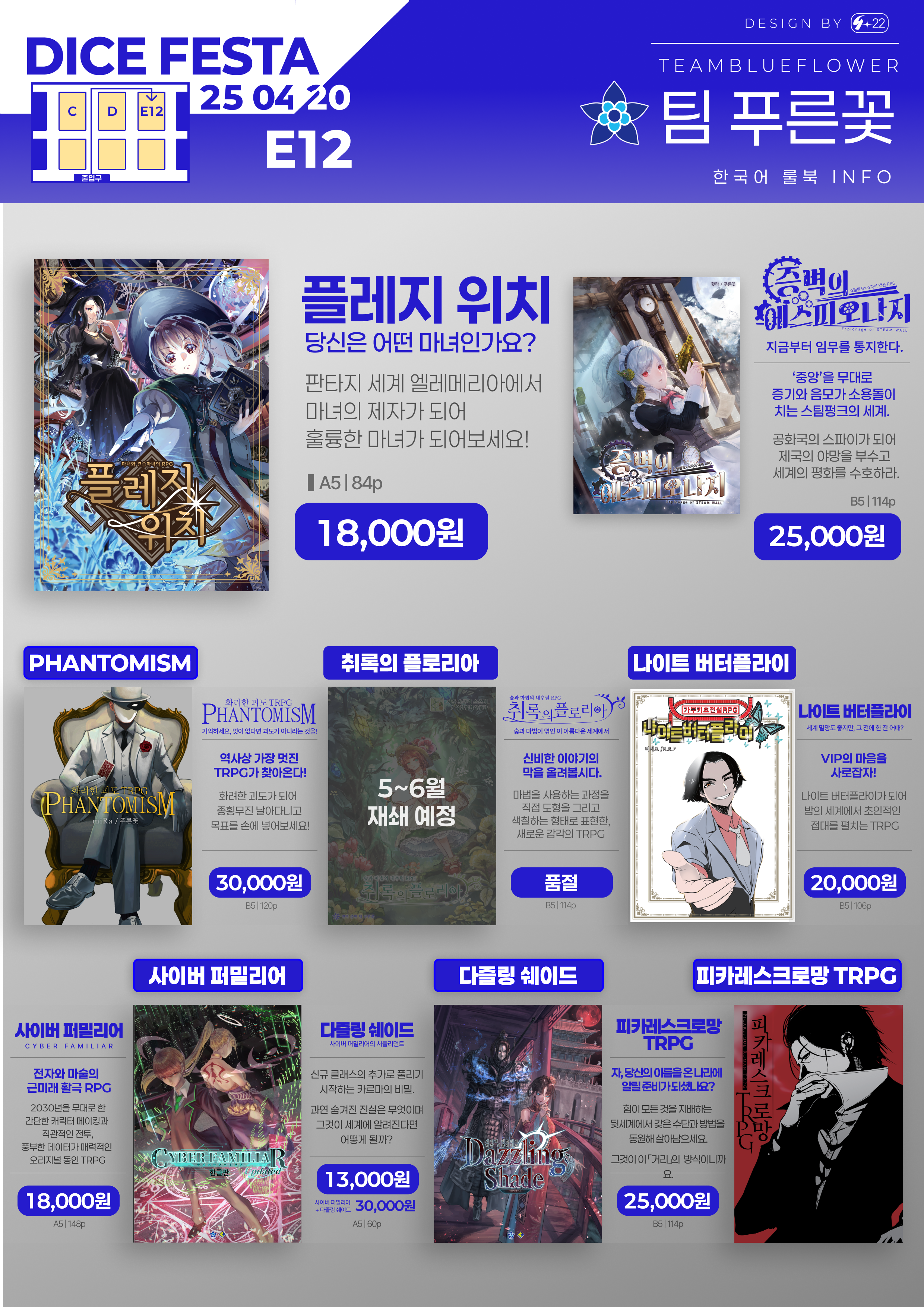2025년 4월 20에 개최되는 다이스페스타DICEFESTA의 푸른꽃 부스 통합 인포입니다.