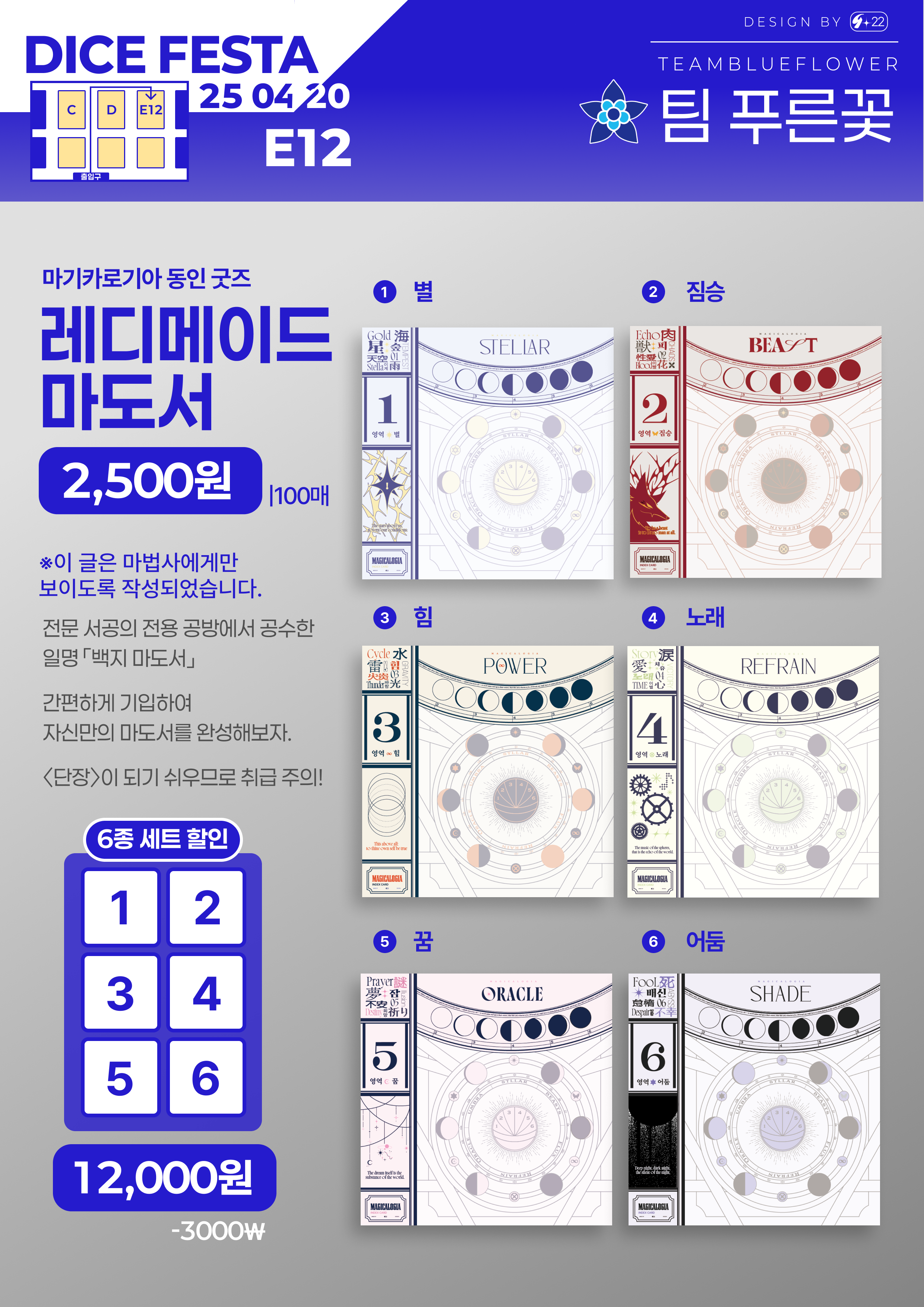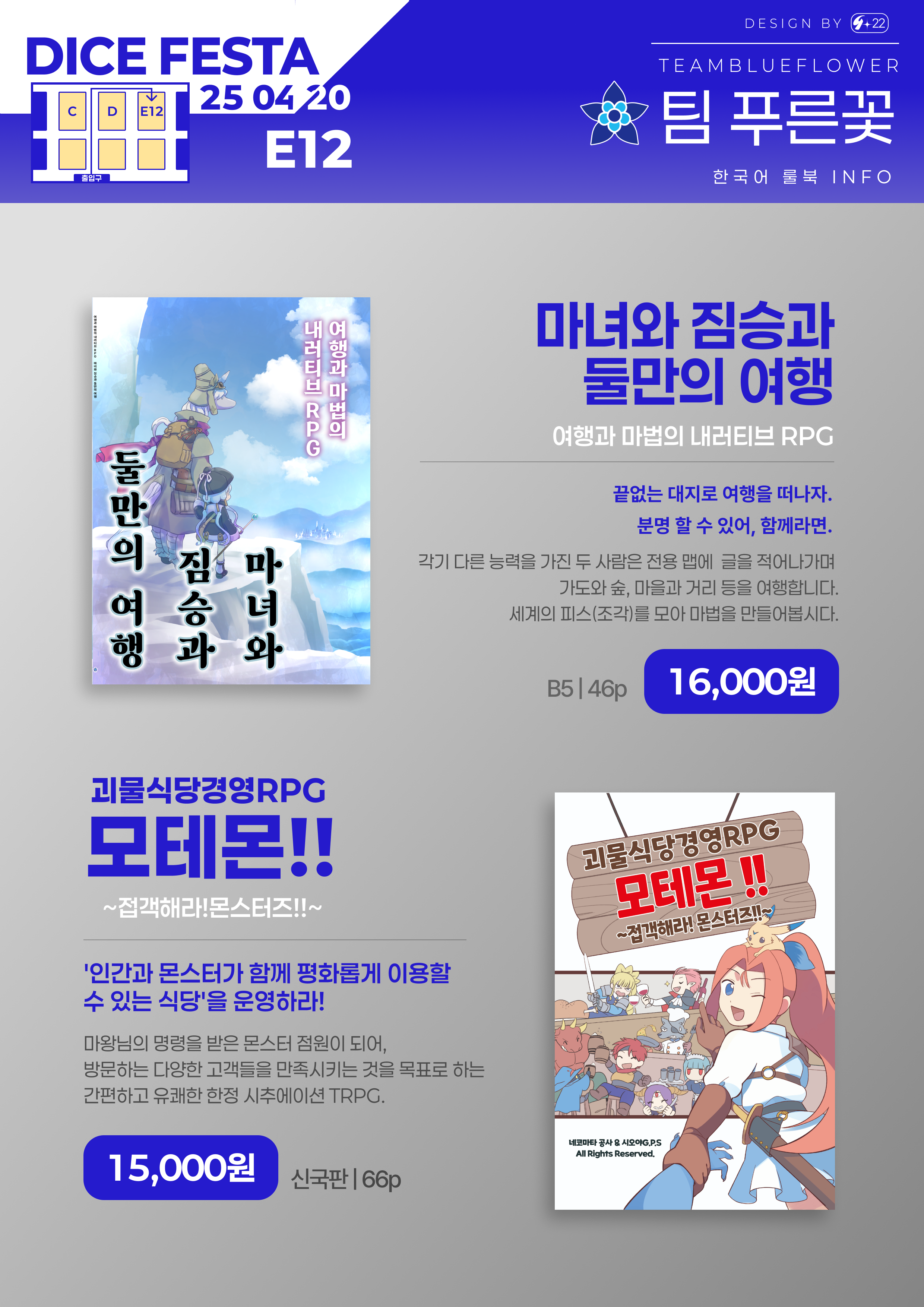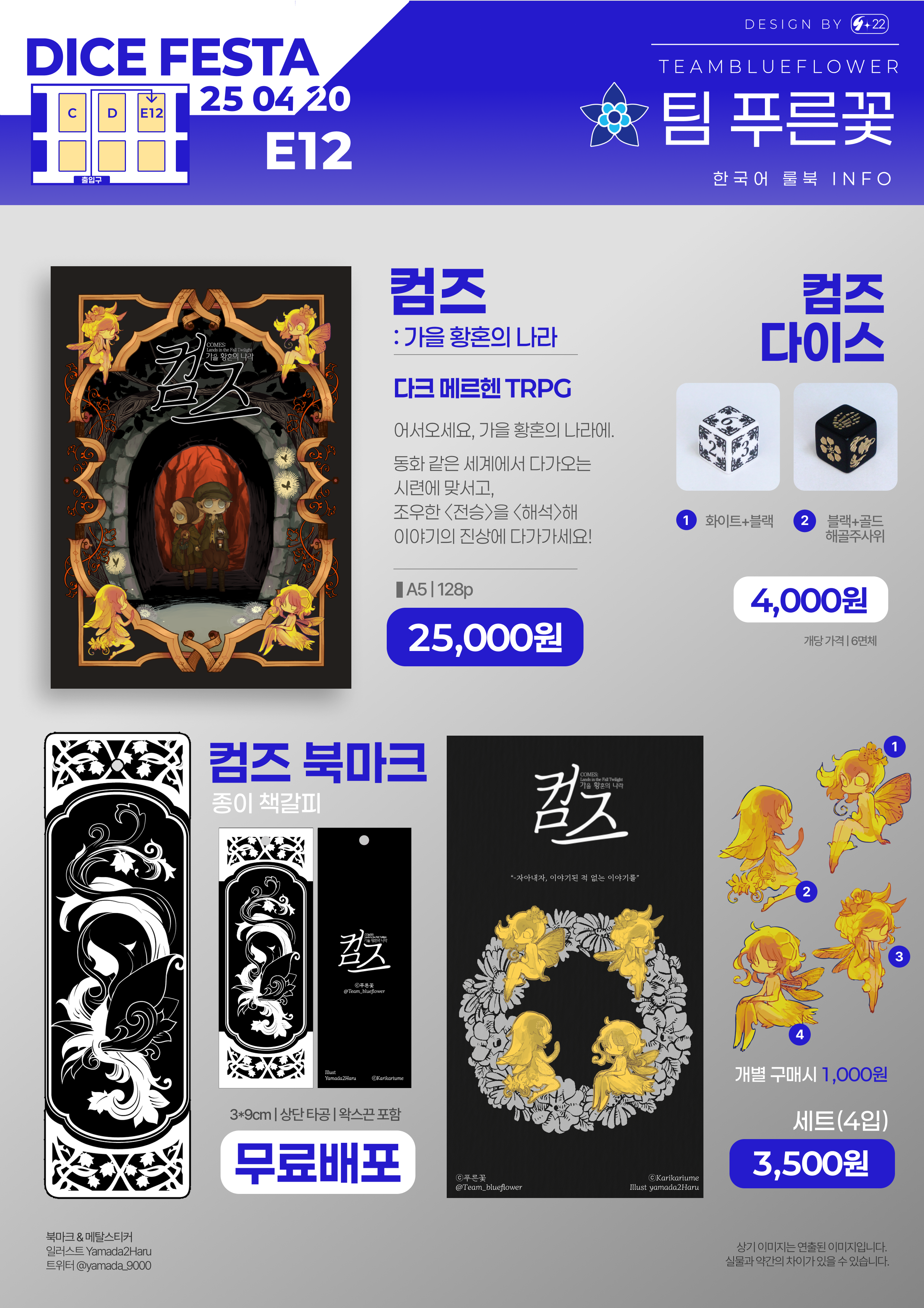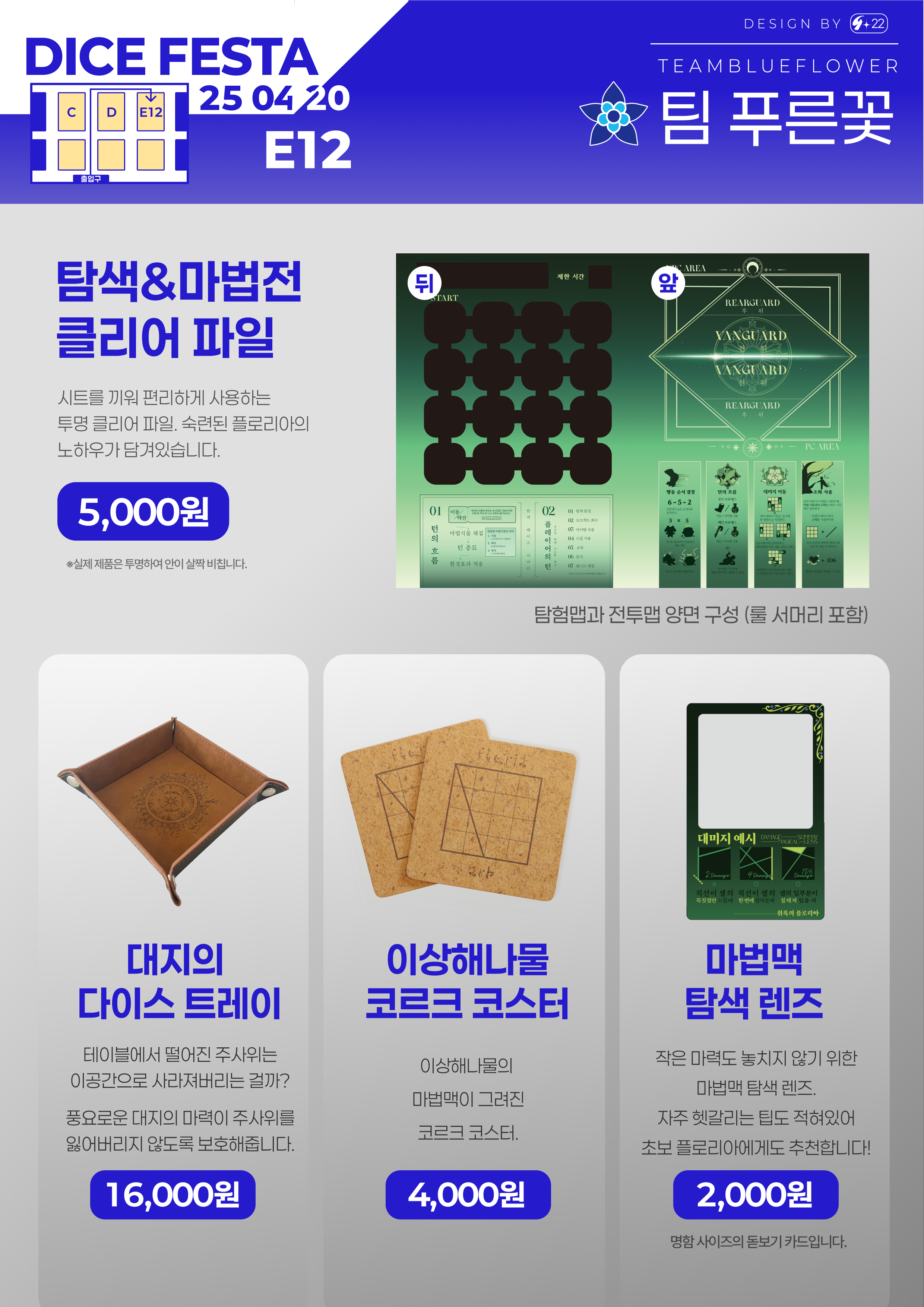 2025년 4월 20에 개최되는 다이스페스타DICEFESTA의 푸른꽃 부스 통합 인포입니다.