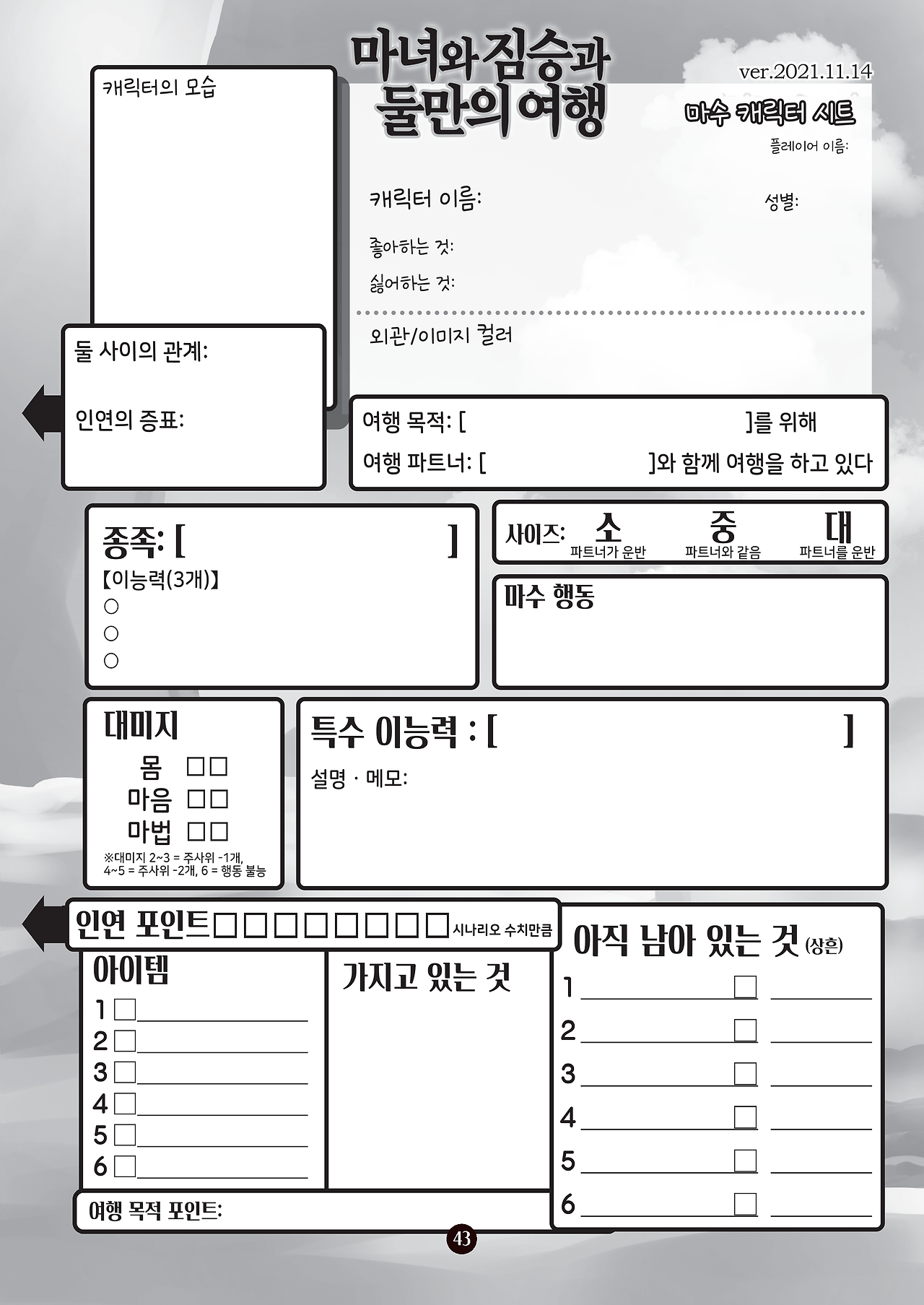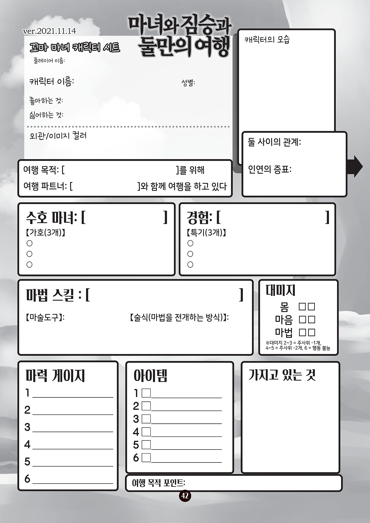 | 마녀와 짐승과 둘만의 여행 인쇄용 자료 (0) | 2025.05.18 |